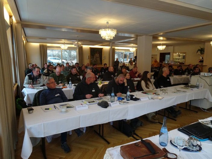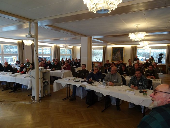 Uwe König, Stadtjagd ISARIA und mit über 20 Jahren Erfahrungswissen als Stadtjäger, leitete von den Allgemeinplätzen zum praktischen Erfahrungswissen über. Sehr anschaulich sind die notwendigen Kenntnisse über die städtischen Wildtiere dargestellt worden. Beratung und Hilfe für den Bürger, wie auch die Prävention, haben den Großteil des Vortrags ausgemacht. Die jagdliche Komponente wurde nicht vergessen und kam zum Schluss. Den Teilnehmern wurde schnell klar: Vom Gesamteinsatzspektrum macht die Jagd beim Stadtjäger den geringsten Anteil aus