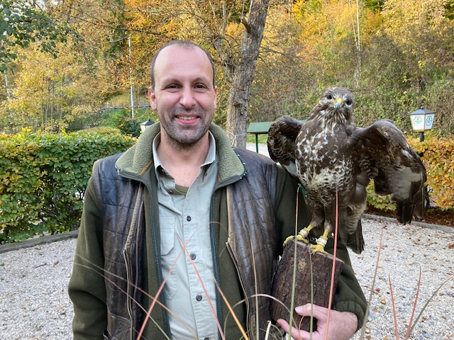 Weiter geht es mit dem Thema Beizjagd mit Greifvögeln. Dabei muss der Falkner gerade im städtischen Raum sehr viel berücksichtigen. Der Vogel kennt keine Gartengrenzen. Fensterscheiben und Glasfassaden können für ihn zur Gefahr werden. Allerdings ist die Jagd mit einem Greifvogel gesellschaftlich eher anerkannt, denn dieser sucht sich aus einer Gruppe Tiere instinktiv das Schwächste aus und sorgt so für eine natürliche Selektion bei der Regulierung von Wildtierbeständen.