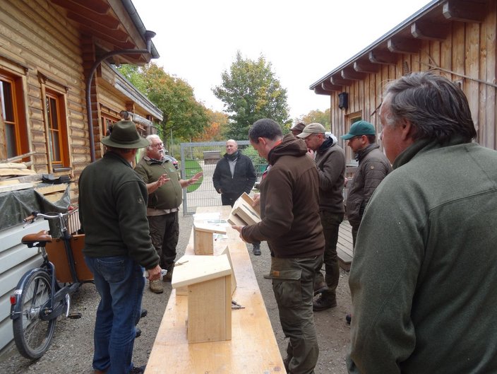Nach der Einführung von Herr Schindler übernahm unser Ausbildungsreferent Dipl. Holzwirt Markus Laiblin. Thema waren die verschiedenen Arten der Nisthilfen. Angefangen von den verschiedenen Arten für Vögel, lernten wir noch Hilfen die für Fledermäuse kennen, zudem wurden Insektenhotels vorgestellt.